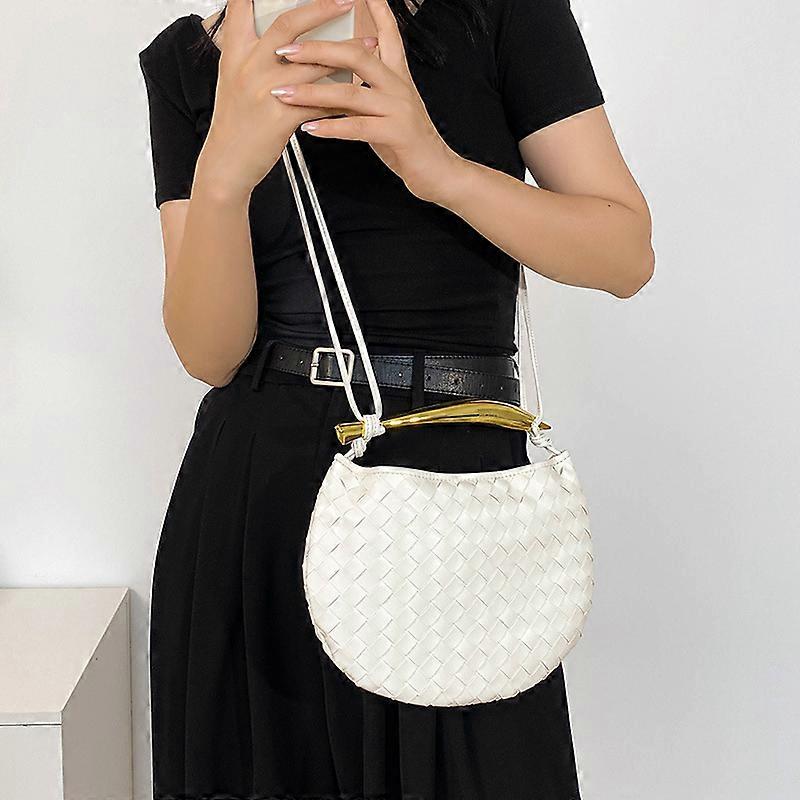 Women's PU metal handle hand-held shoulder bag woven bag (28*19*2cm) -yyds