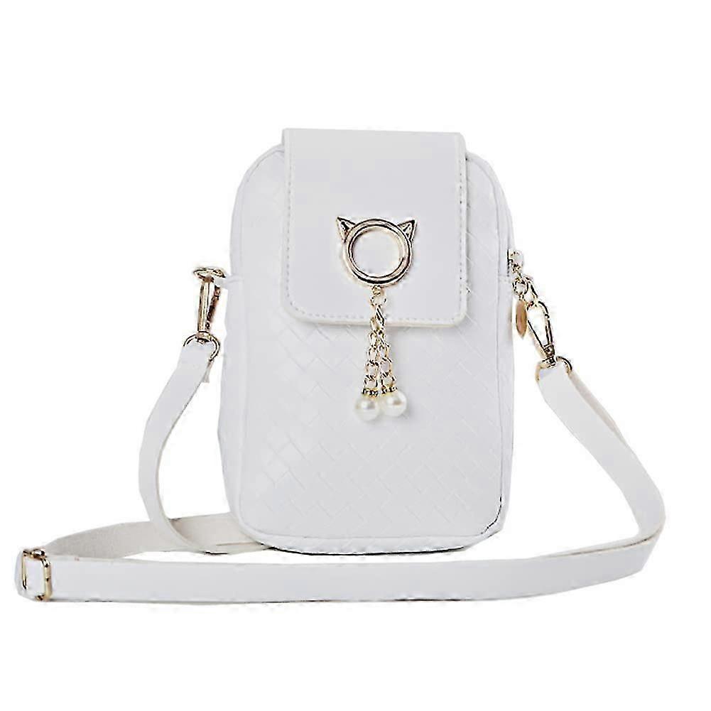 Womens Mini Crossbody PU Cellphone Shoulder Bag(White)