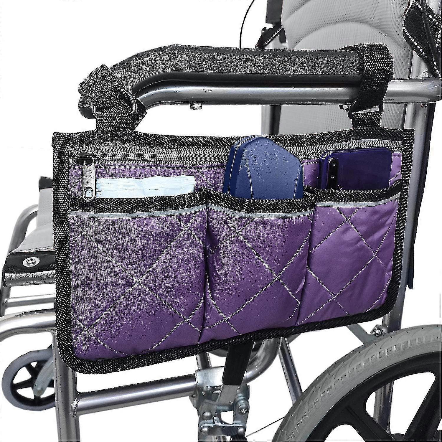 Purple Color-wheelchair Bag, Wheelchair Bag, Wheelchair Side Bag For Armrests With Reflective Strip For Walkers, Mobility Scooter, Rollator Accessorie
