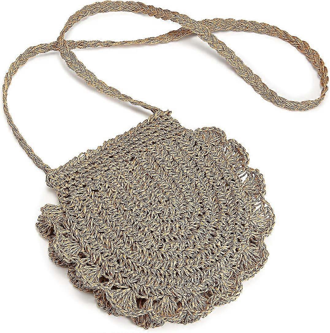 Straw Crossbody Bag, Ladies Shoulder Bag Retro Mushroom Lace Straw Bag Casual Woven Bag Women Shoulder Slung Beach Bag Handbag(light Brown)
