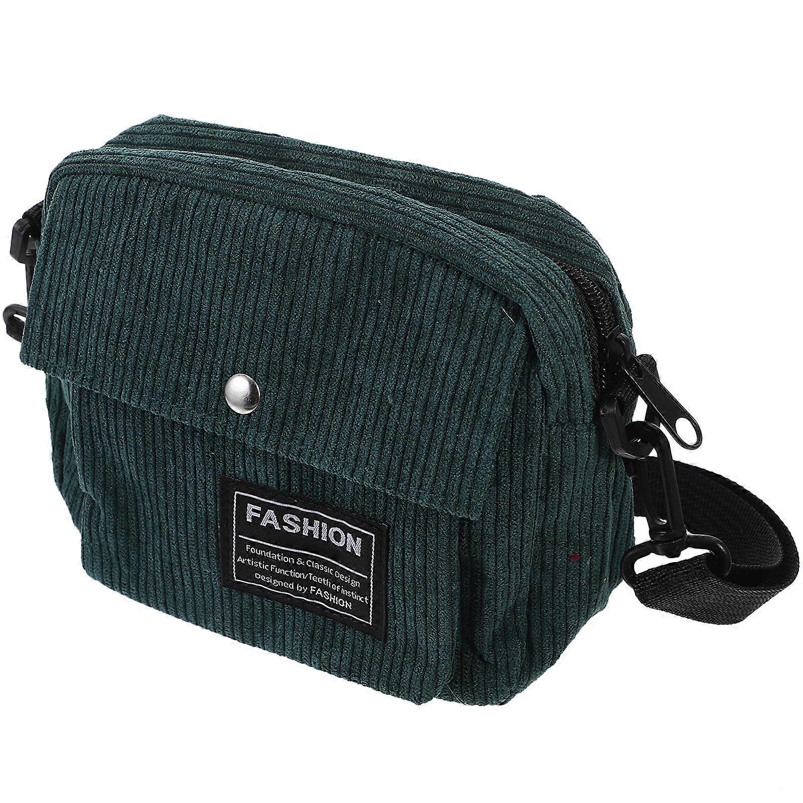 Crossbody Bag Square Storage Pouch for Women Daily Use Green Corduroy Carry 1Pack