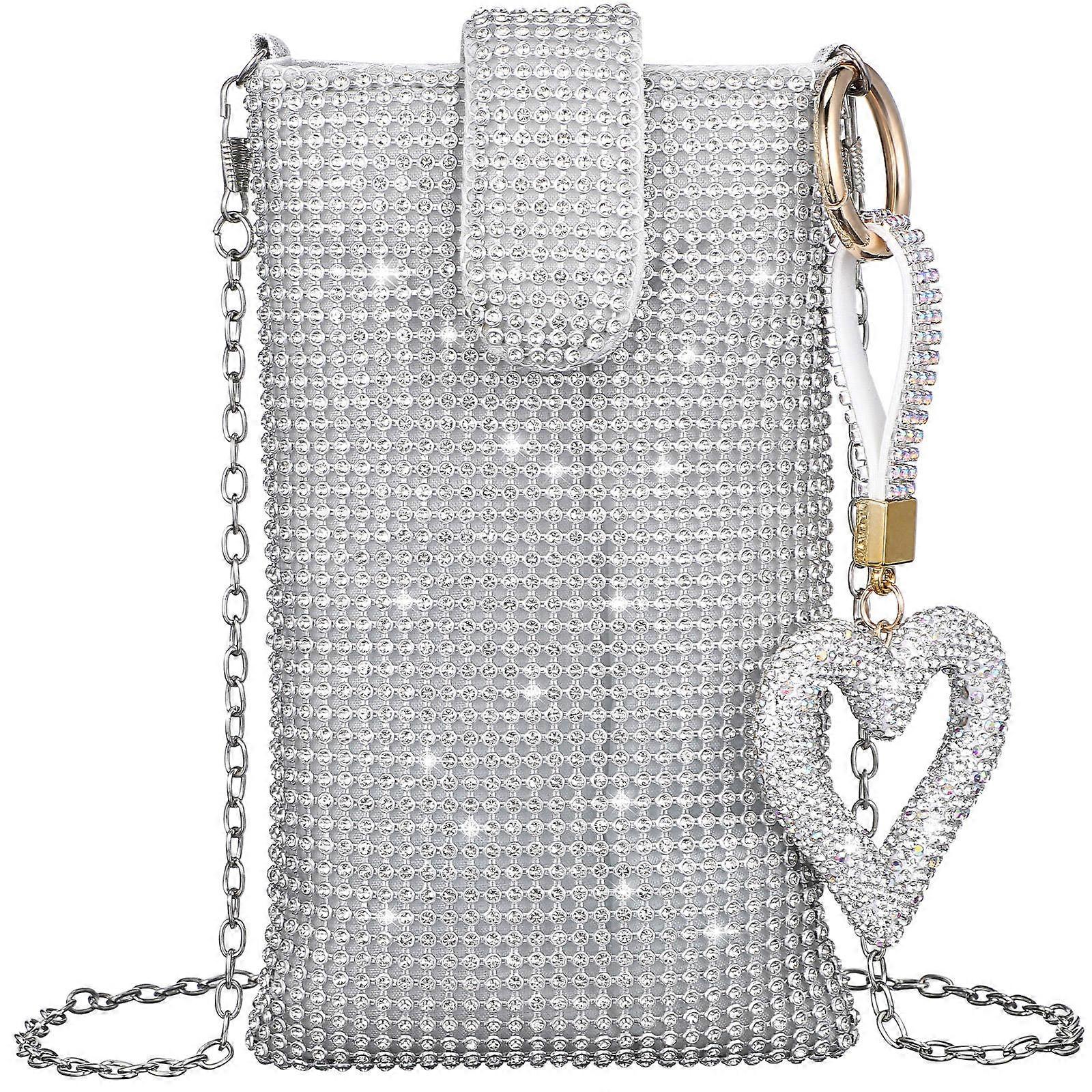 Introducing our fashionable shoulder bag for phone, the great accessory for any stylish individual. With its classic color and versatile design, this bag can be easily paired with any outfit. The phone bag also comes with a heart-shaped keychain that can be attached to the bag for added decoration. Features -Color:Silver -Material:Acrylic, nylon -Size:18.50X11.00X2.00cm/7.27X4.32X0.79in -Size:15.00X7.00X1.00cm/5.89X2.75X0.39in - Stylish Appearance: The crossbody bag features a fashionable design with classic colors that are easy to match with different outfits. - Keychain Included: The heart-shaped keychain can be hung the cell phone bag as a decoration, adding a cute and stylish element. - Multi-functional Use: The shoulder crossbody bag is suitable for daily use and can hold small items such as phones, , and keys. - Lightweight and Portable: The cell phone crossbody bag is lightweight and easy to carry, making it convenient for travel and daily use. - Strong and Sturdy: The women crossbody bag is made of selected materials that are resistant to fading, fraying, and damage. Package list: 1 x crossbody bag 1 x keychain
