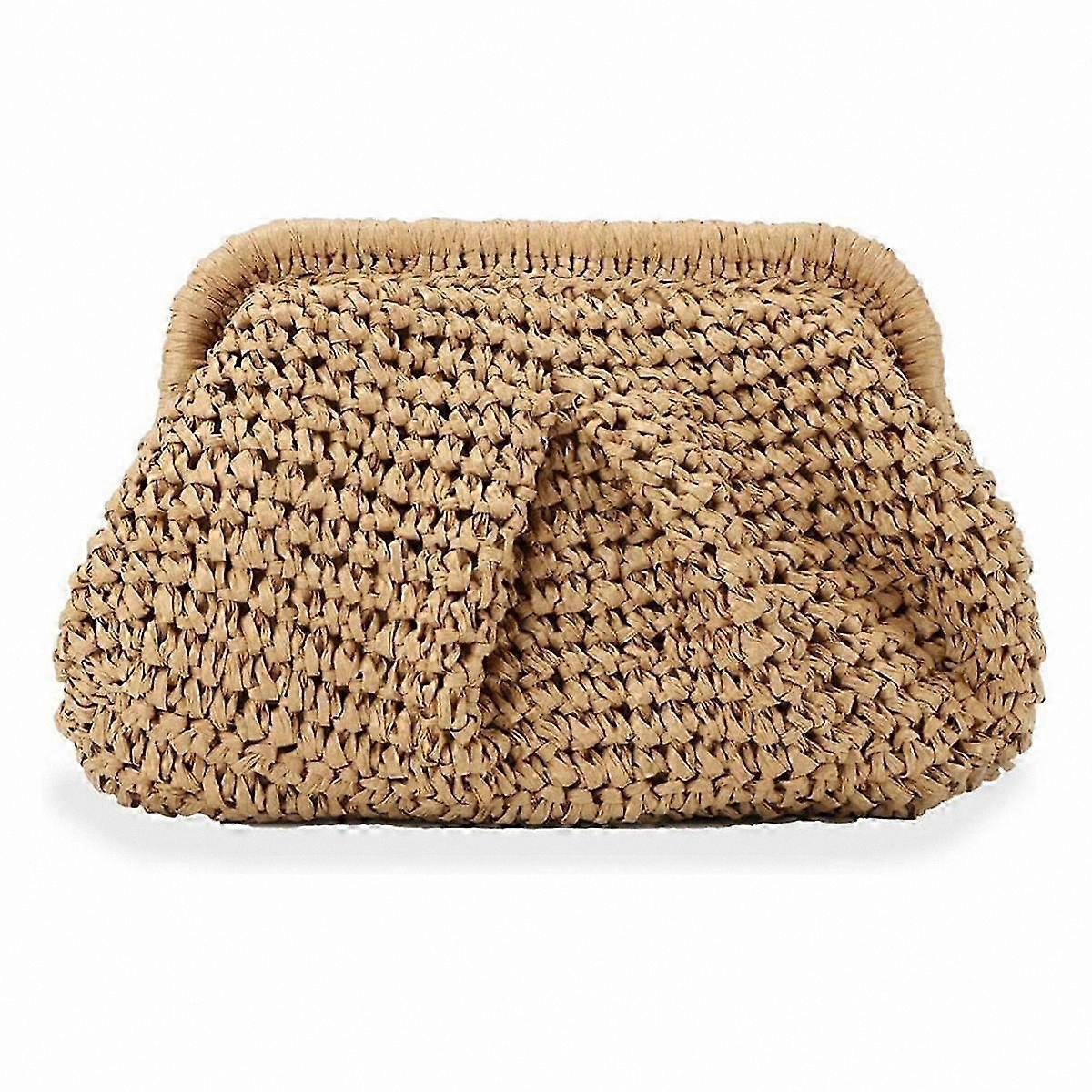 Summer Beach Woven Crossbody Bag for Women Straw Shoulder Purse with Cloud Dumpling Design Handbag Clutch Pouch
