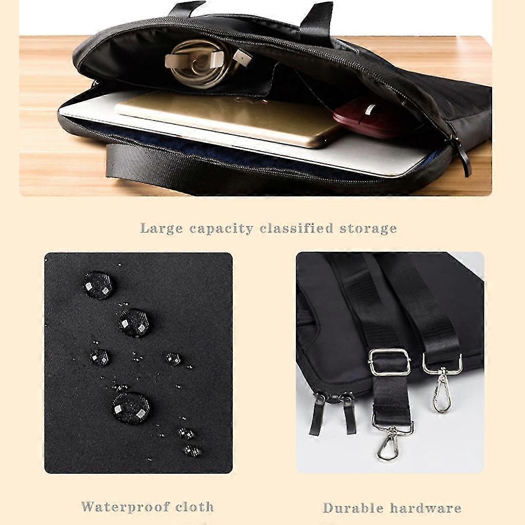Description Features: Laptop bag is made of durable water resistant fabric, generous and durability. Provide a removable shoulder strap,can be use as shoulder bag or handbag base on your need; It will be a good partner for your daily use or business trip. Large capacity laptop bag with internal classify storage pockets is for your other essential things. Slim appearance design, fashion, leisure and generous laptop sleeve bag can be both casual and professional; Specifications: Material:Polyester Option Type:10in Laptop Bag;12in Laptop Bag;13in Laptop Bag;14in Laptop Bag;15.4in Laptop Bag;15.6in Laptop Bag; 10in Laptop Bag Internal Size:Approx.28x19.5x2cm/11.02x7.68x0.79in; 10in Laptop Bag External Size:Approx.29x21.5x2cm/11.42x8.46x0.79in; 12in Laptop Bag Internal Size:Approx.30x20.5x2cm/11.81x8.07x0.79in; 12in Laptop Bag External Size:Approx.32x22.5x2cm/12.6x8.86x0.79in; 13in Laptop Bag Internal Size:Approx.32.5x22.5x3cm/13x8.86x1.18in; 13in Laptop Bag External Size:Approx.34x24x3cm/13.39x9.45x1.18in; 14in Laptop Bag Internal Size:Approx.33x23x3cm/13x9.06x1.18in; 14in Laptop Bag External Size:Approx.35.5x25.5x3cm/13.98x10.04x1.18in; 15.4in Laptop Bag Internal Size:Approx.36x25x4cm/14.17x9.84x1.57in; 15.4in Laptop Bag External Size:Approx.39x28x4cm/15.35x11.02x1.57in; 15.6in Laptop Bag Internal Size:Approx.38x26x4cm/14.96x10.24x1.57in; 15.6in Laptop Bag External Size:Approx.41.5x29.5x4cm/16.34x11.61x1.57in; Note: Please allow 1-2cm errors due to manual measurement,please make sure that you do not mind before you order. Due to the difference between different monitors, the picture may not reflect the actual color of the item. Package includes: 1xLaptop Bag