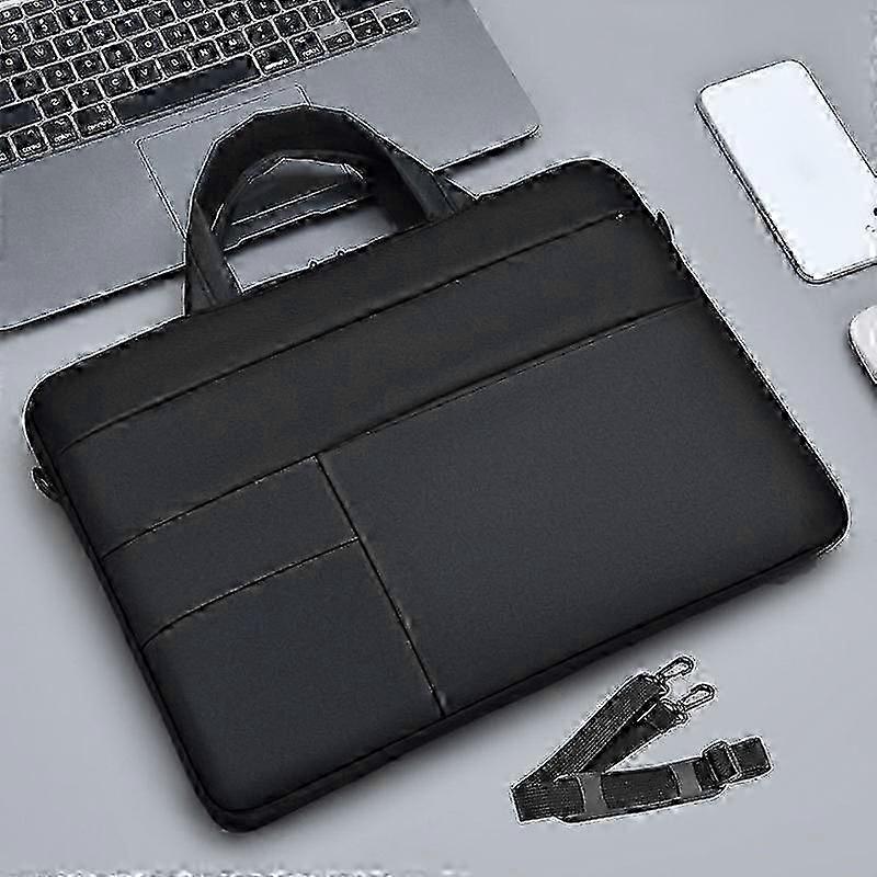 Laptop bag fashion business computer shoulder bag thin section Apple Xiaomi Huawei Asus laptop bag 14 inch (black with shoulder strap).