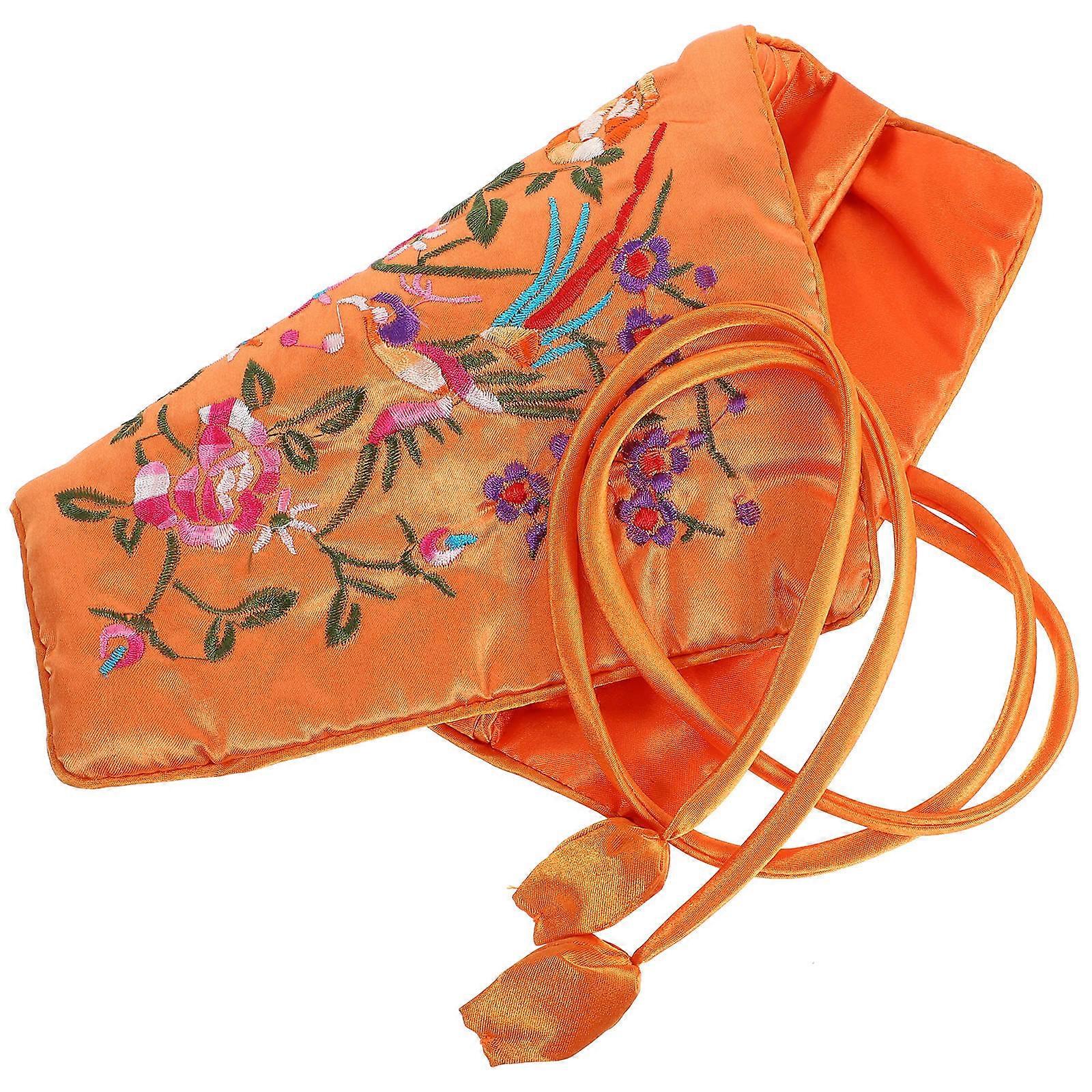 Embroidered Jewelry Roll for Jewelry Storage Handmade Floral Orange Bag