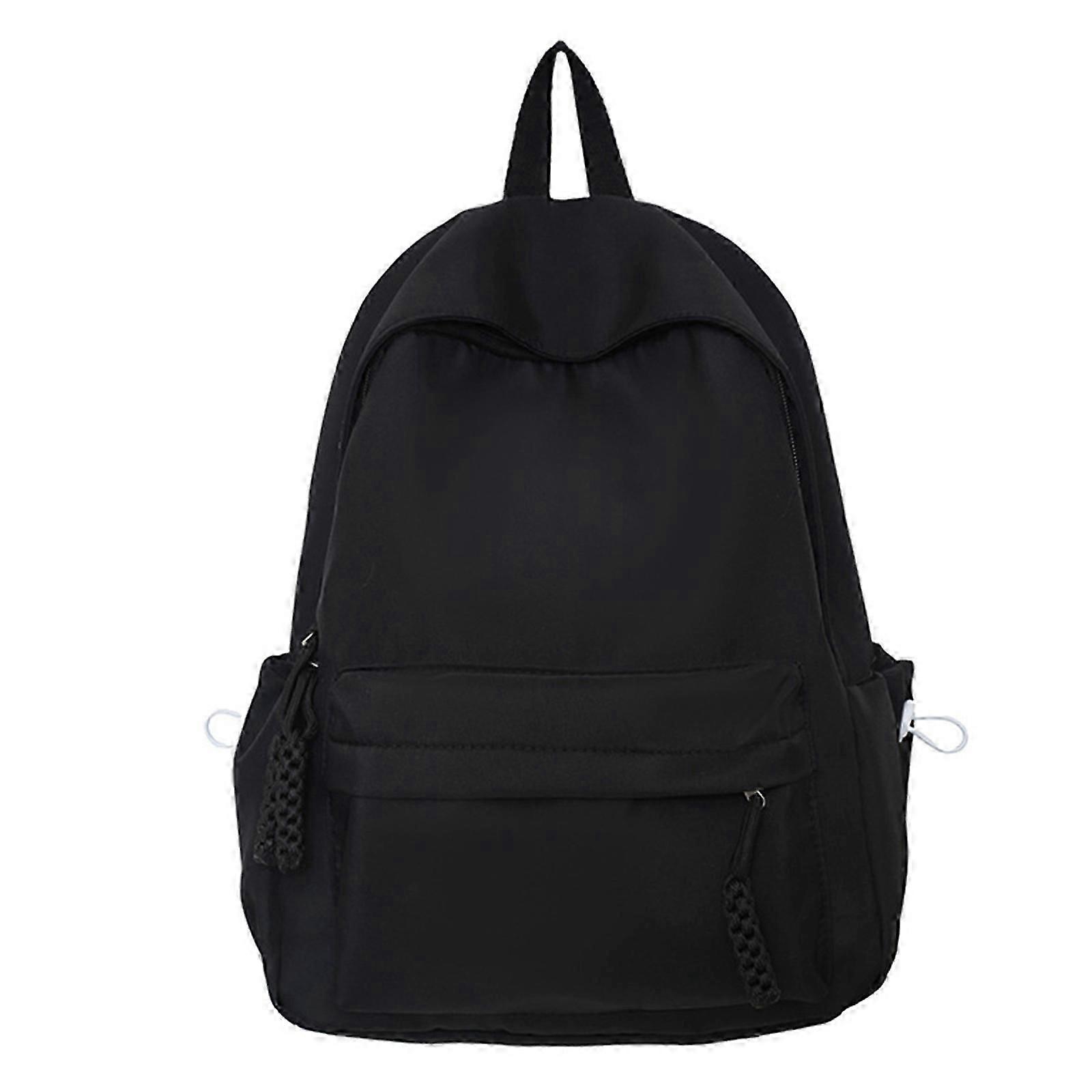 Versatile Women's Student School Bag Backpack Large Capacity Smooth Zipper Solid Color Rucksack