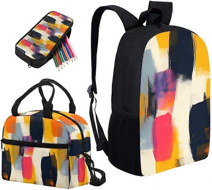 Colorful Graffiti School Bag Backpack for Students Pigment Splash with Insulated Lunch Bag Pen Case School Bookbag Abstract Art for Teen Boys Girls