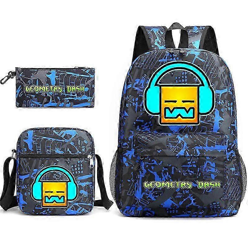 Geometry Dash School Bag Backpack Pencil Case Shoulder Bag Three-piece Set _32