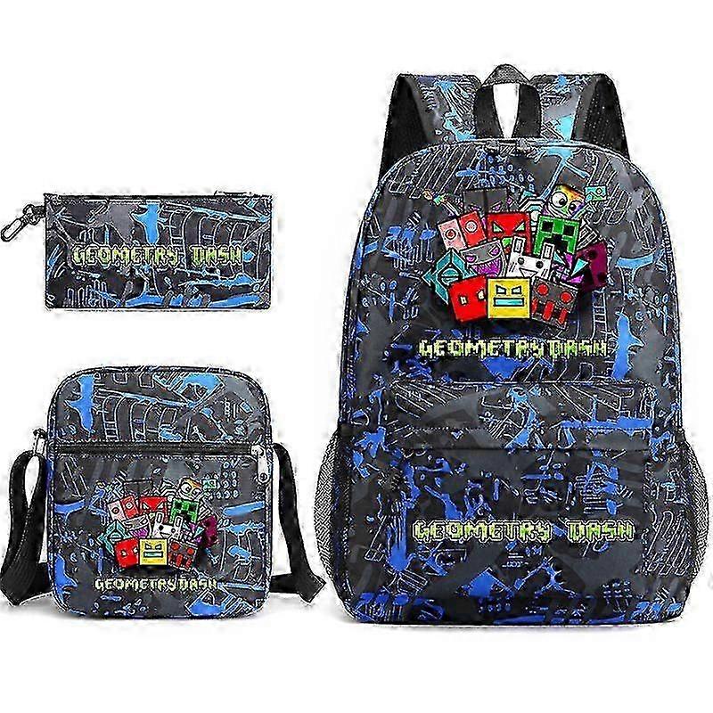 Geometry Dash School Bag Backpack Pencil Case Shoulder Bag Three-piece Set _34