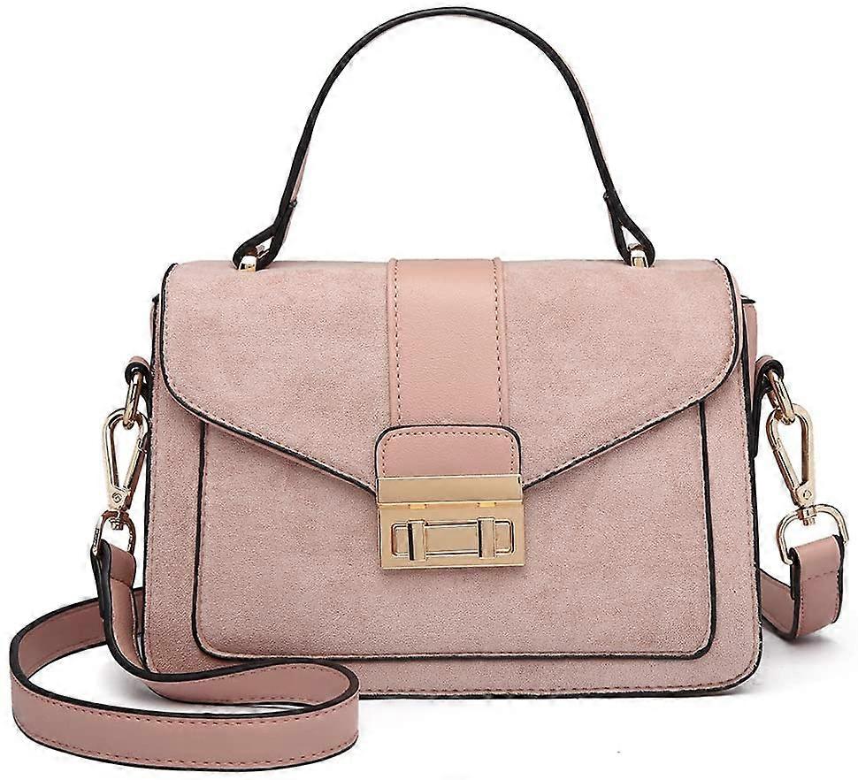 Pink Women Top Handle Bag Suede Handbags Pu Leather Shoulder Bag Elegant Modern For Work Shopping Travel Small (Black-1)