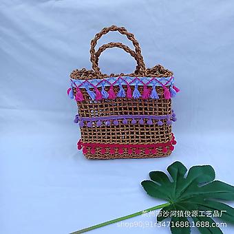 New Hollow Grass Woven Bag, Ethnic Style Mesh Simple And Casual Women's Bag, Wool Ball, Colorful Tassel Bag