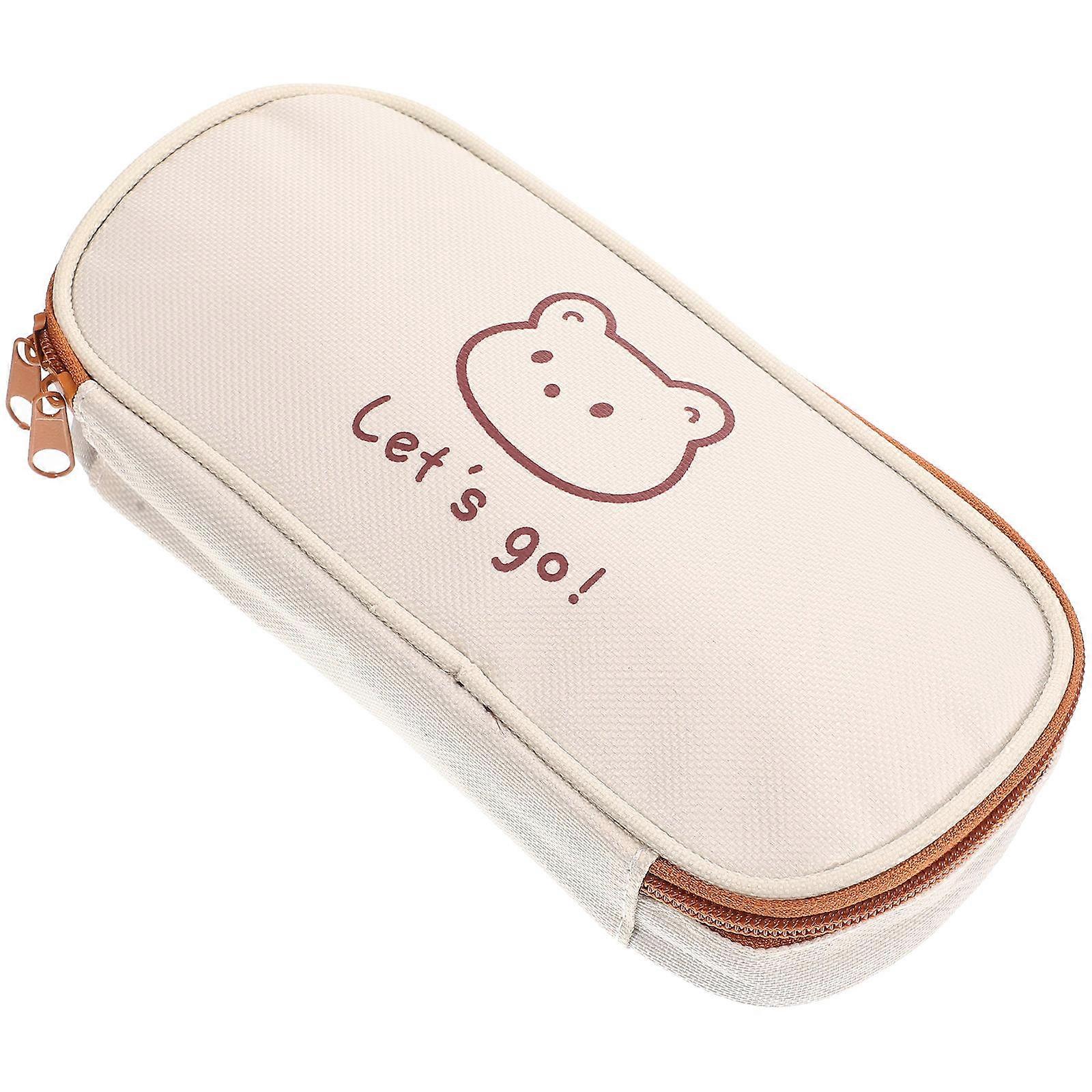 Stationery Organizer Bag Canvas Pencil Case Rectangular Portable Storage For Travel School Office Use Beige 21.5X10.5cm 1Set