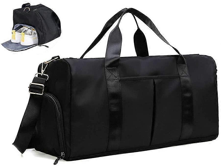 Dry Wet Separatedovernight travel bags are made of high density premium tear & water-resistant nylon fabric and the high quality two-way metal zippers, both of them provide long-lasting durability against daily activities. Unique waterproof compartment helps you to separate dry items and wet items, if you have wet clothes or towel, you can put it in wet gym bag. Separate Shoe Compartment DesignA separate shoe compartment can help you carry and keep your shoes better in your travel bag, even if it is dirty and the other objects still won't get stained. Large Capacitys bag features one main zipped compartment, a shoe pocket and the 3 zipper bag. One side shoes pocket is ideal for your running shoes. Large capacity helps you easily organize all your essential items for sports or travel. Multiple ways of carryingThis sport bag comes with adjustable and detachable shoulder straps. It can be also used as a handbag or a shoulder bag. There is a trolley sleeve on the back of the travel bag that can be hung on the spinner luggage. So It can be carried in a variety of ways (portable, single shouldered, straddling, even hanging on the trunk). Wide ApplicationA perfect reliable companion for both indoor and outdoor sports. Suitable for gym sports, school, travel duffle, gym holdall, mountaineering, etc.