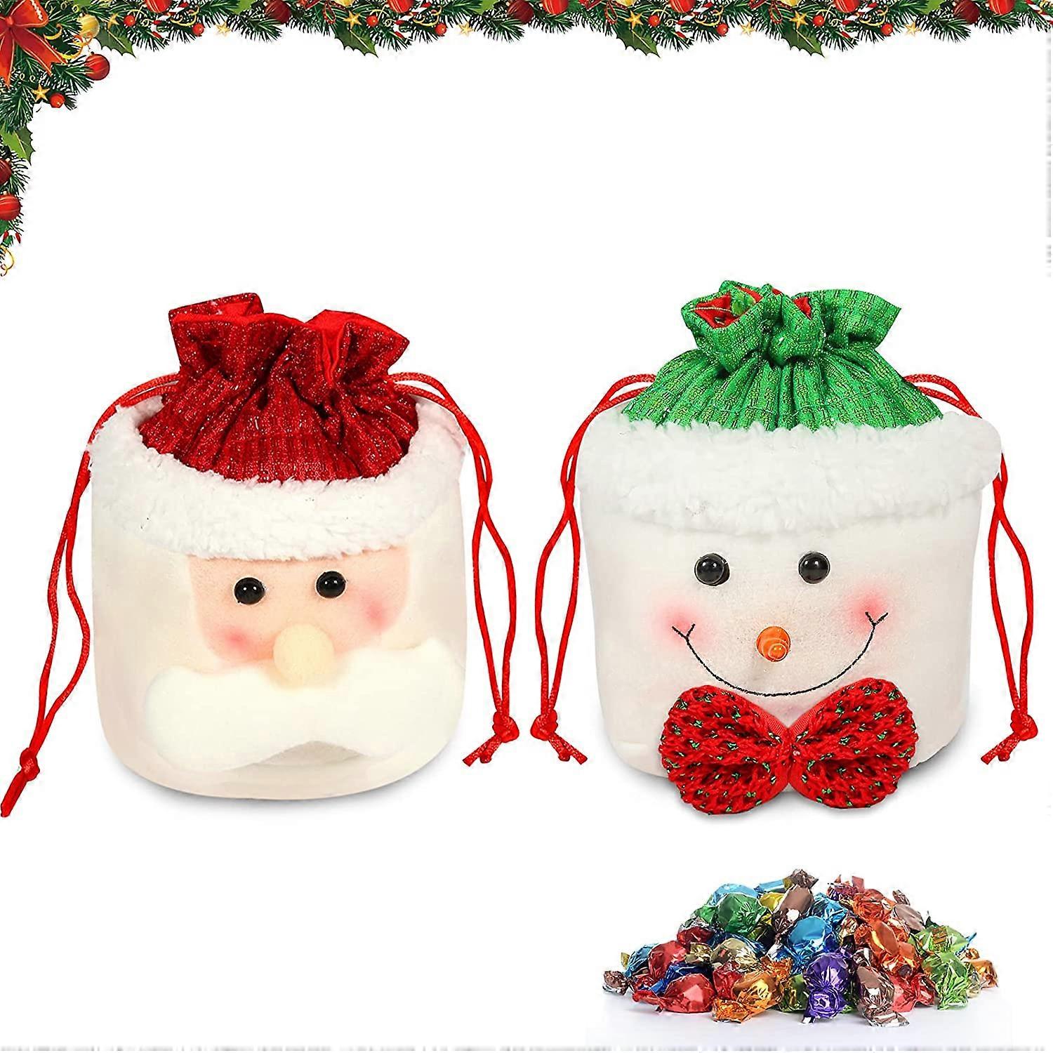 Piece Gift Bag, Santa Gift Bag, Christmas Bag with Drawstring, 3D Look of Santa Claus, Snowman, Deer and Penguin for Treats Cookies Storage