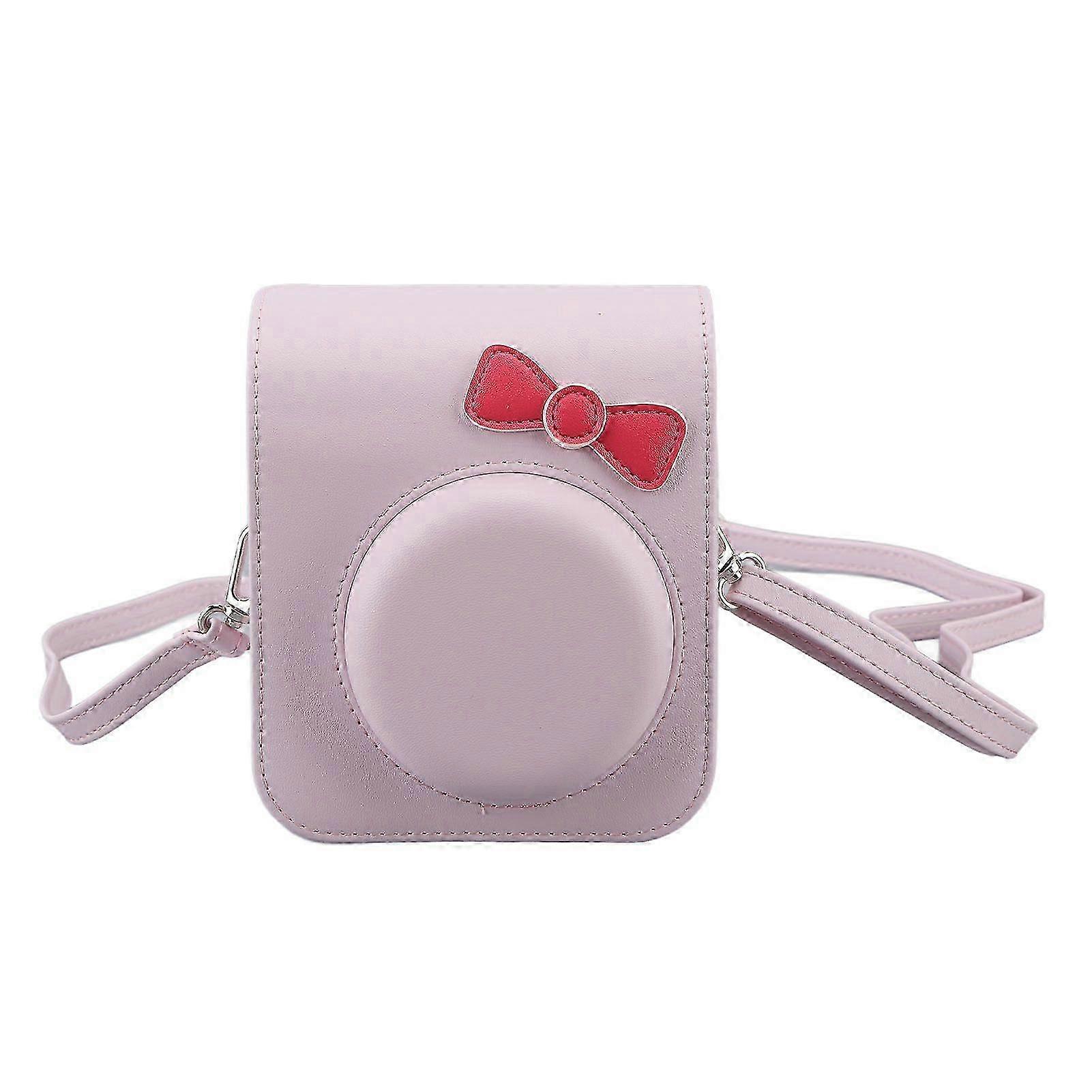 Camera Protective Case Portable Bow Tie Storage Cover Carrying Bag with Adjustable Shoulder Strap for Fujifilm Mini 12 Pink