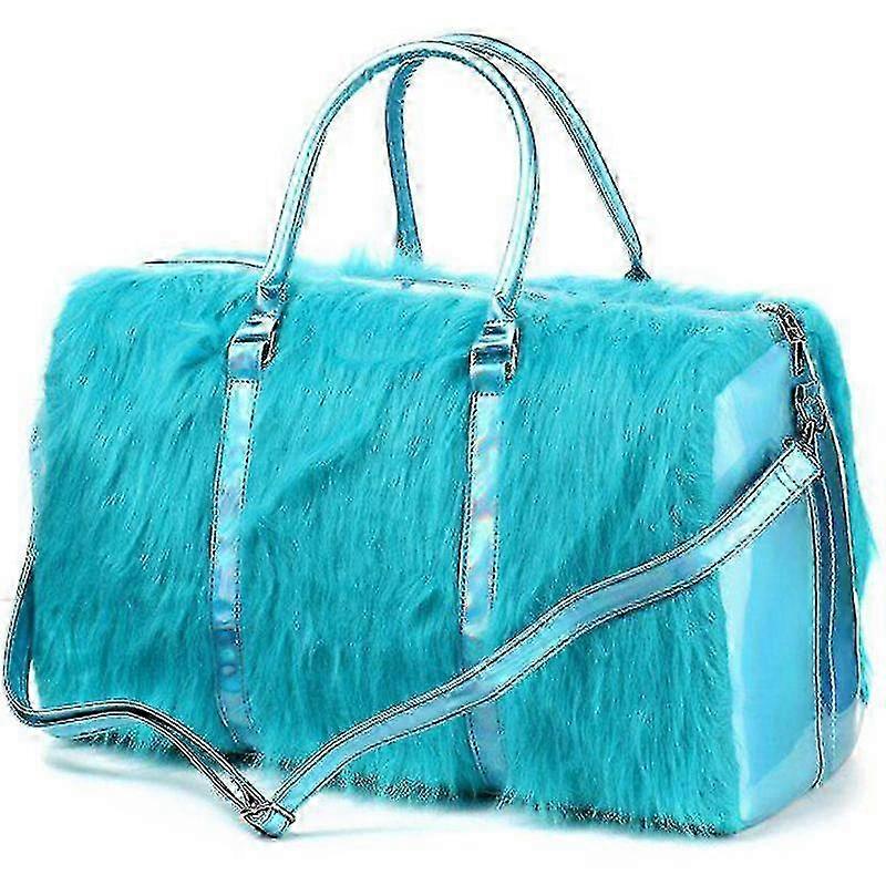 Laser Handbag, Pink Faux Fur, 19-inch Large Capacity Travel Bag