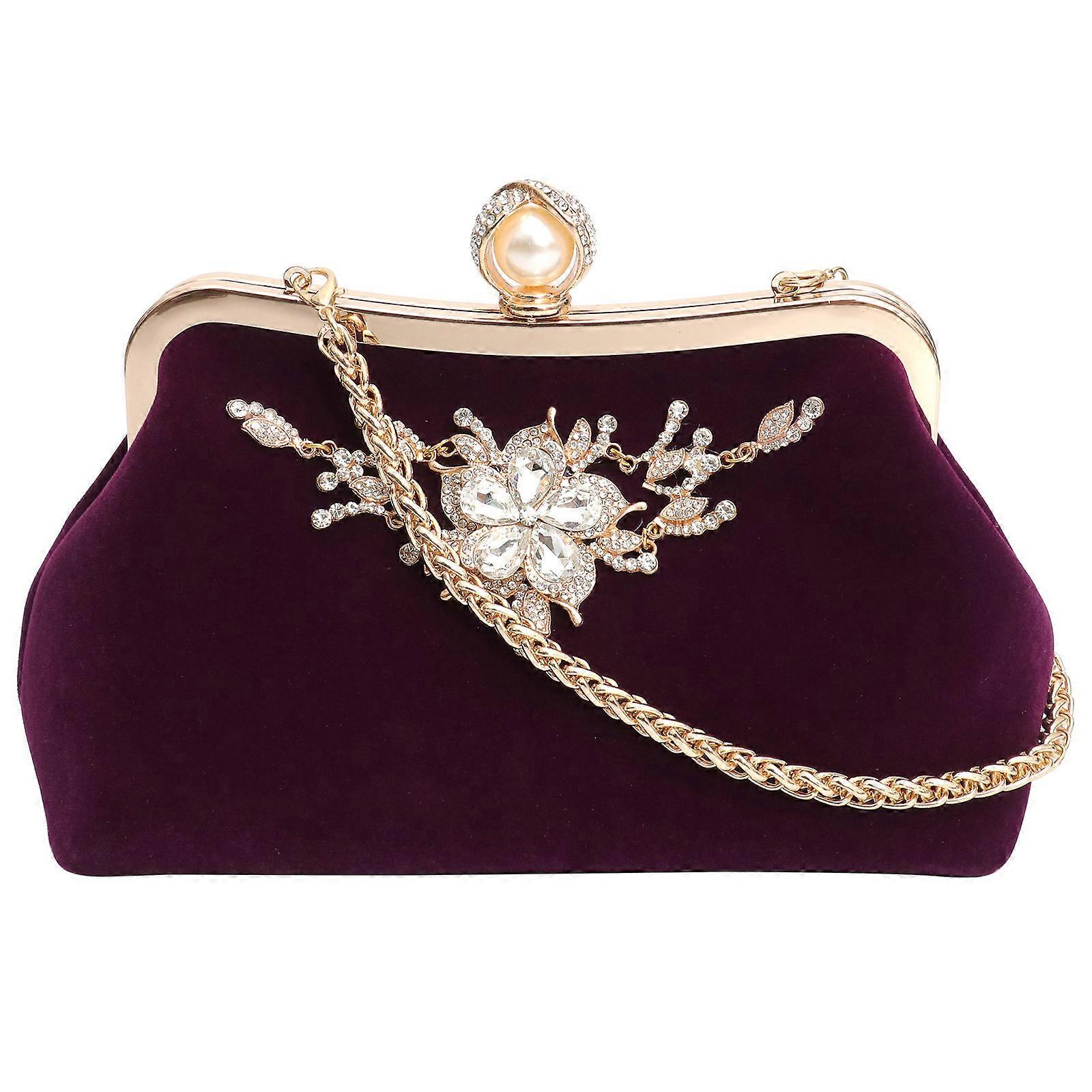 Purple Women Clutch Handbag with Rhinestones Embellishment Made of Plush Fabric for Evening Party 10.2 inches