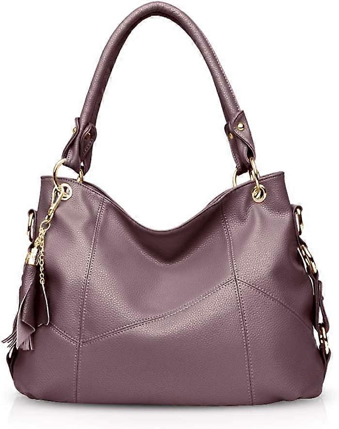 Women Handbag Large Capacity Shoulder Bags Soft Leather Hobo Bag Fashion Cross-Body Bags Top-Handle Bags with Tassel Purple