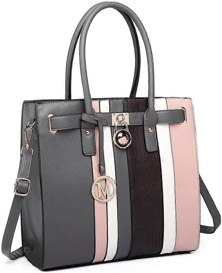 Grey Women Handbag Faux Leather Snake Skin Contrasting Stripe Cross Body Shoulder Satchel Tote Bag with Padlock