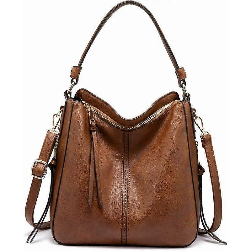 Women's Large PU Leather Handbag - Brown Shoulder Tote Bag