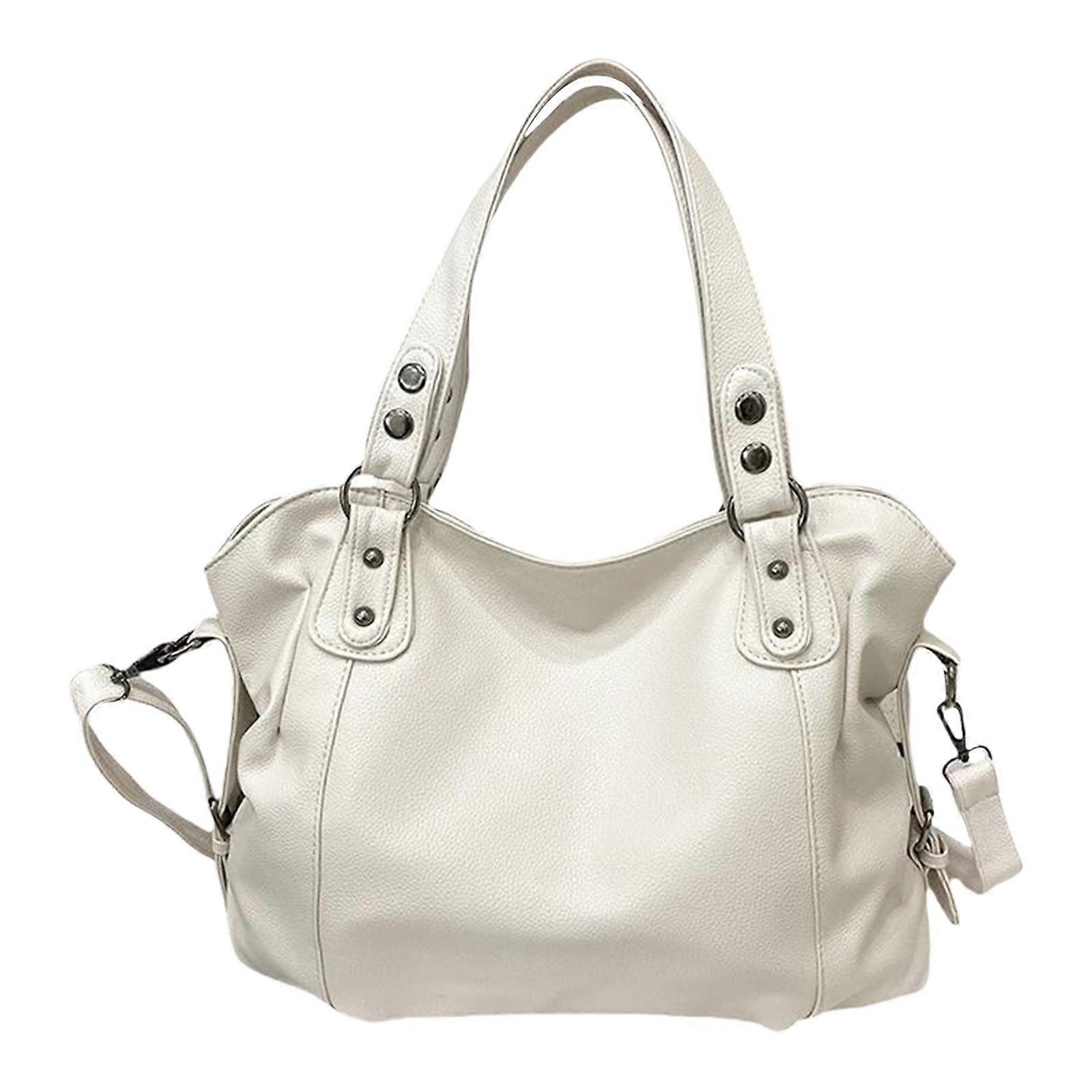 Spacious Ladies Handbag PU Leather Crossbody Purse Casual Shoulder Purse with Adjustable Strap for Everyday Use White