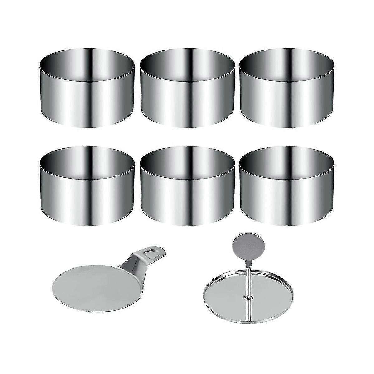 Dessert Rings And Food Rings, Small Ring Set, 8 Pieces Mini Cake Ring Moulds, Tamp For Baking Cake