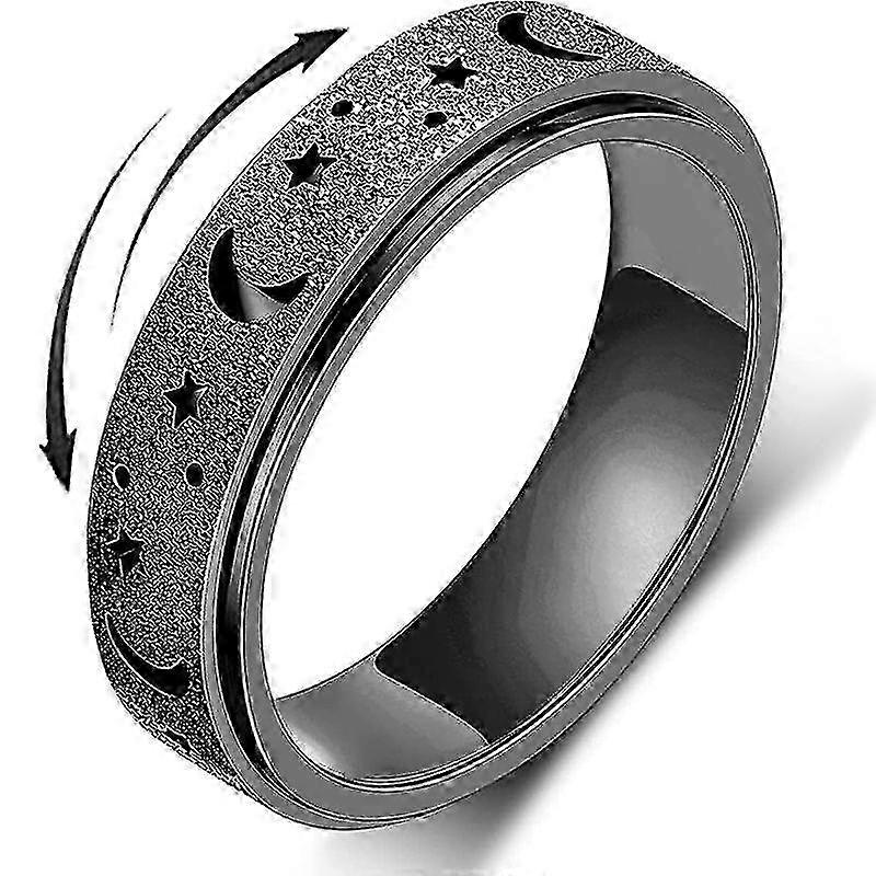 Anxiety Rings Spinner Rings,Rotating Star Moon Matte Ring,Titanium Steel Frosted Hollowed Out Decompression Ring
