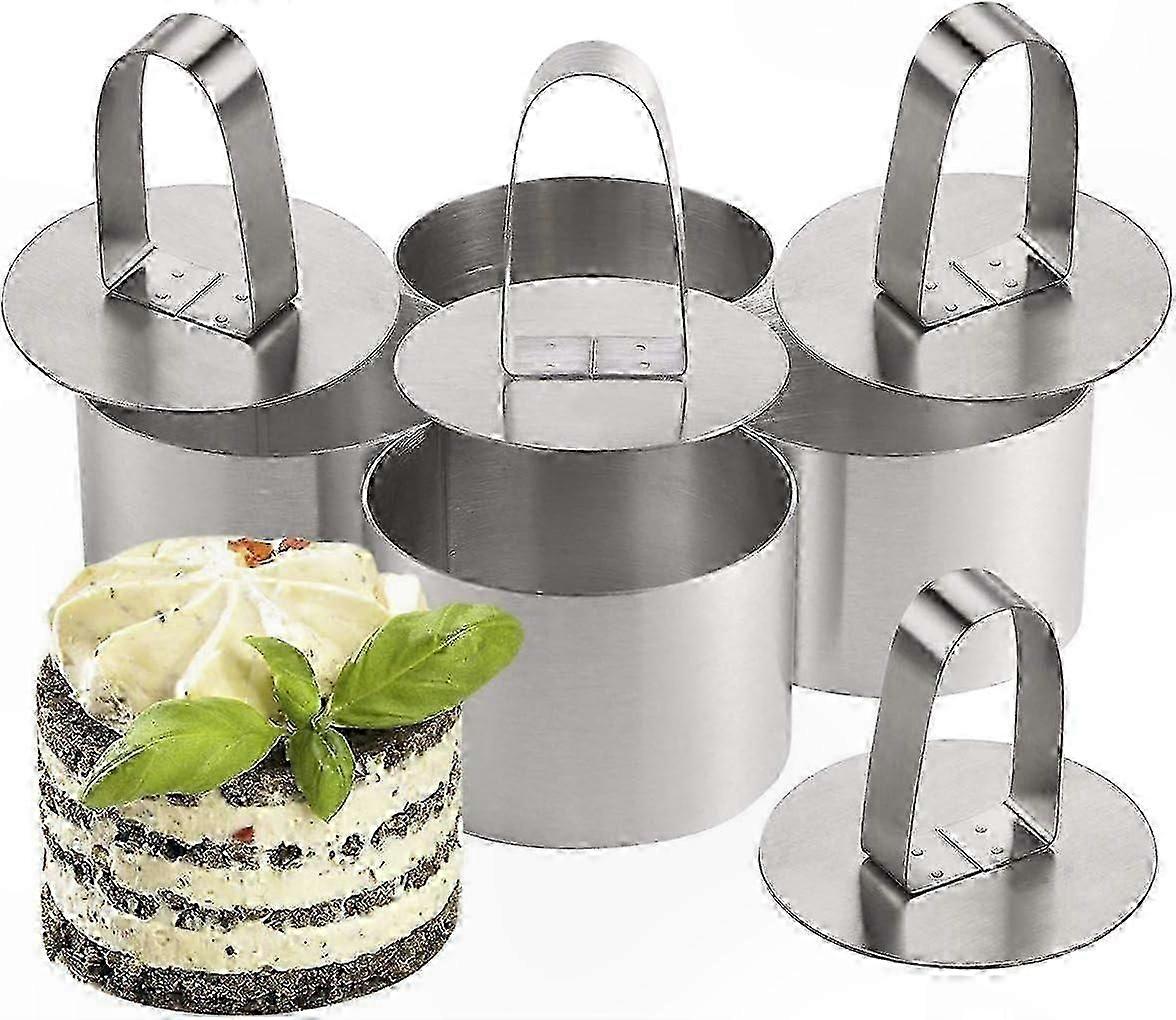 8cm Non-Stick Stainless Steel Baking Rings with Pusher, 4-Pack Cooking Tools for Even Cake Layers