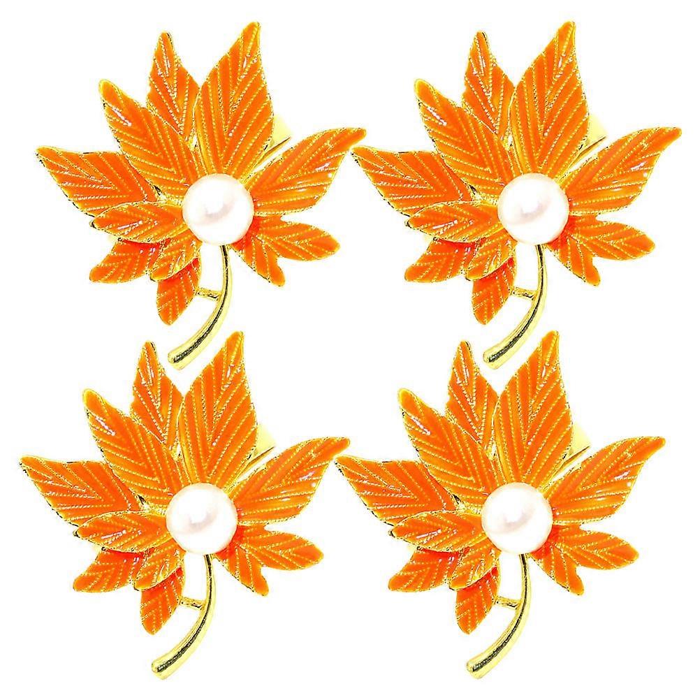 Maple Leaf Napkin Rings Table Decoration Elegant Design Orange 5.60X5.40X4.50CM Alloy Napkin Holding 4Pcs