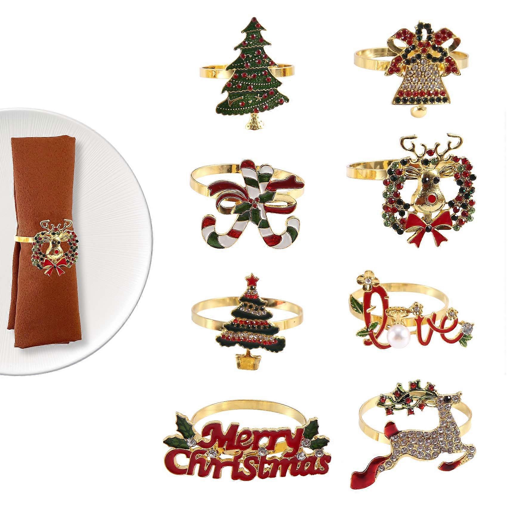 Christmas Napkin Rings - Set of 8 Napkin Holder Rings for Holiday Christmas Table Decoration Elk Napkin Buckle