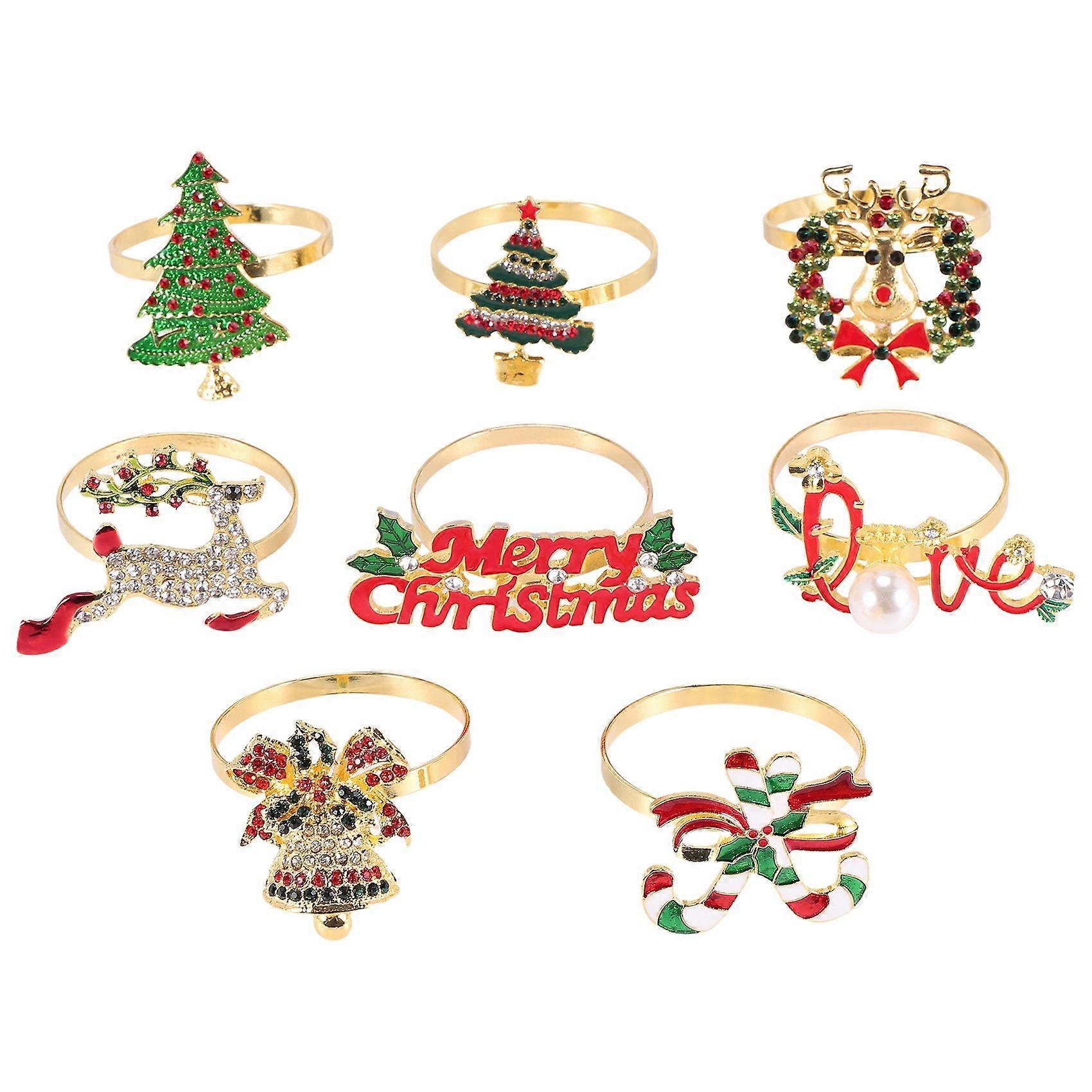 Christmas Napkin Rings - Set of 8 Napkin Holder Rings for Holiday Christmas Table Decoration Elk Na