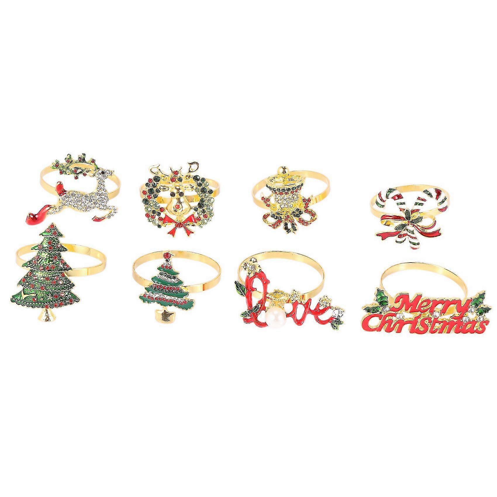 Christmas Napkin Rings - Set Of 8 Napkin Holder Rings For Holiday Christmas Table Decoration Elk Na