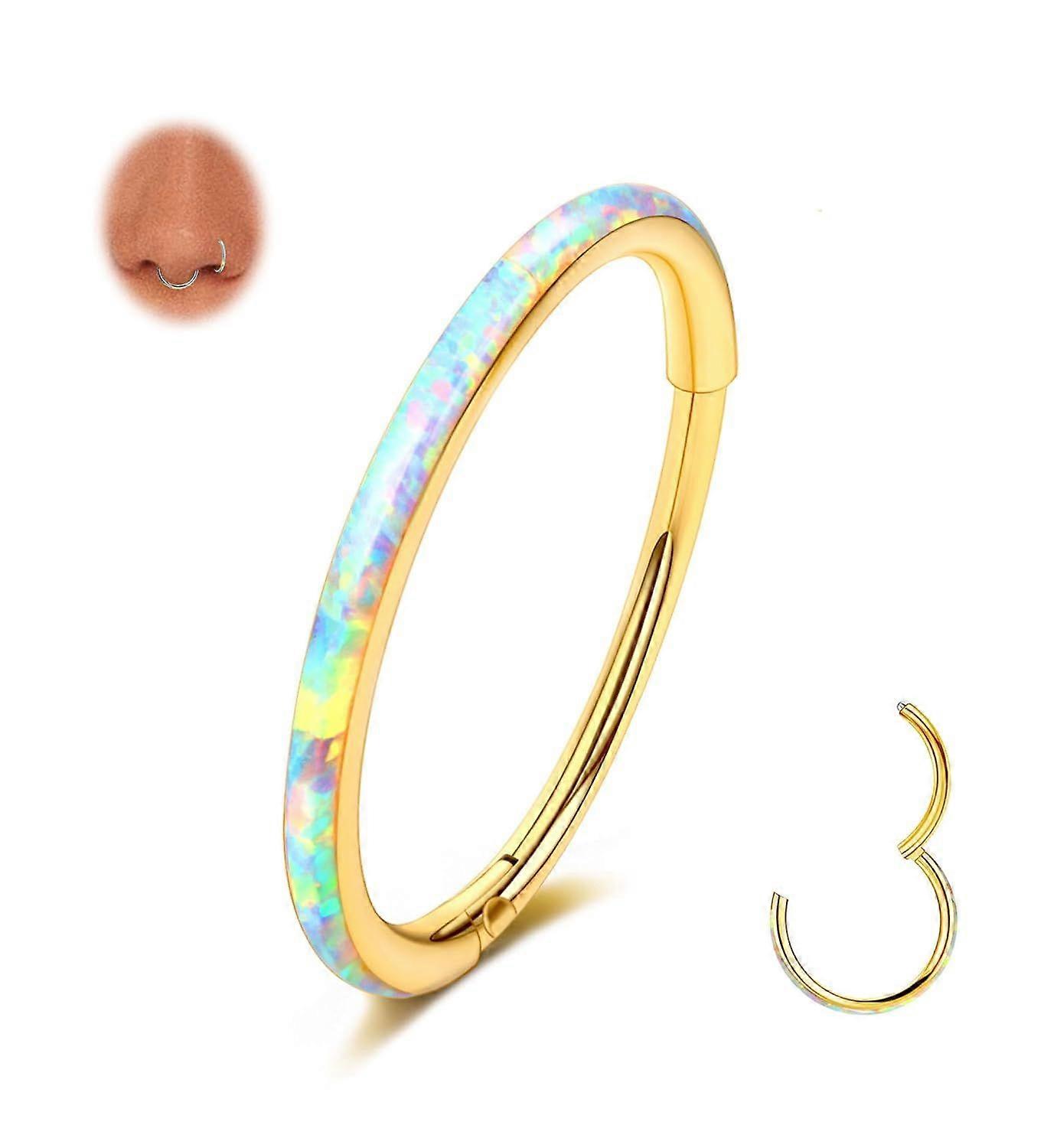 Opal Septum Ring 16G 18G 20G Hinged Hoop Ring for Women Stainless Steel Opal Nose Ring Hoo