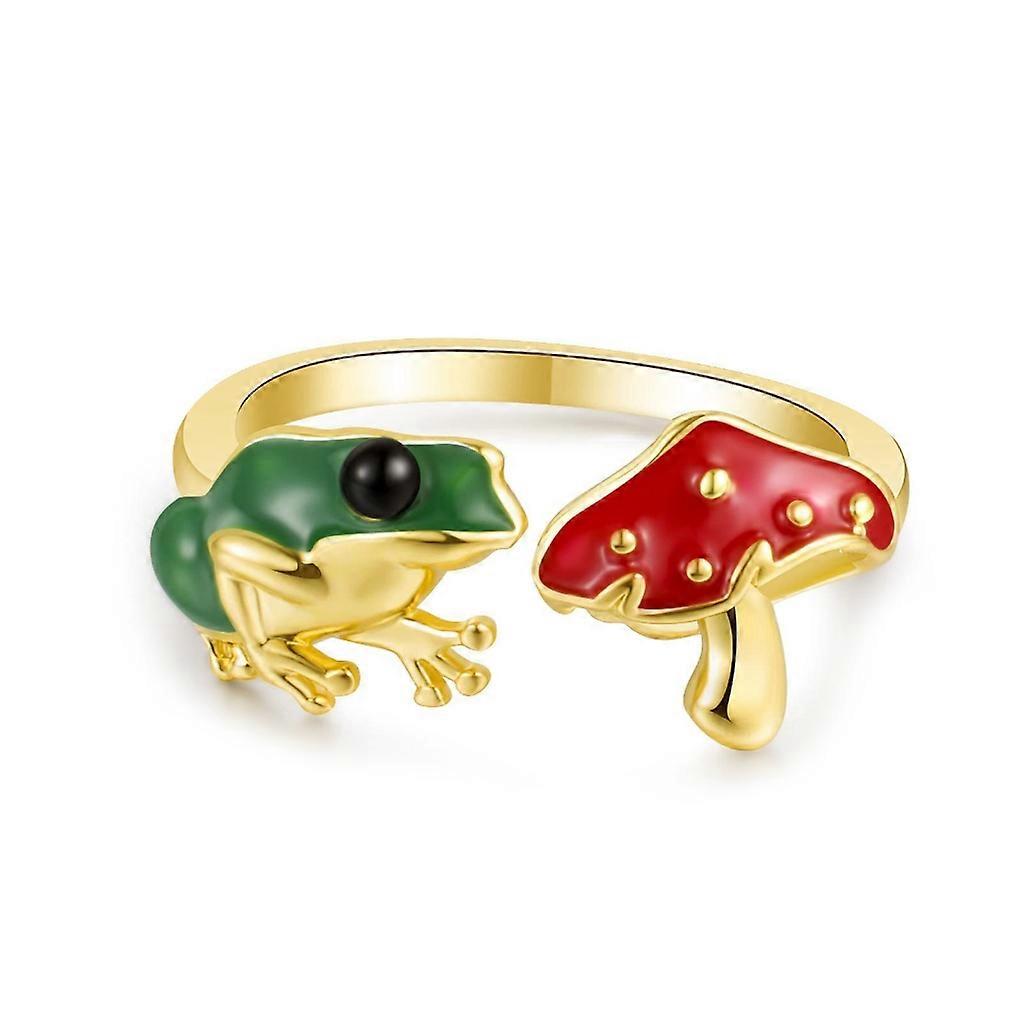 Mushroom Ring Green Frog-Red Mushroom Open Rings Vintage Colorful Cute Animal Adjustable Rings Personalized Jewelry Gift