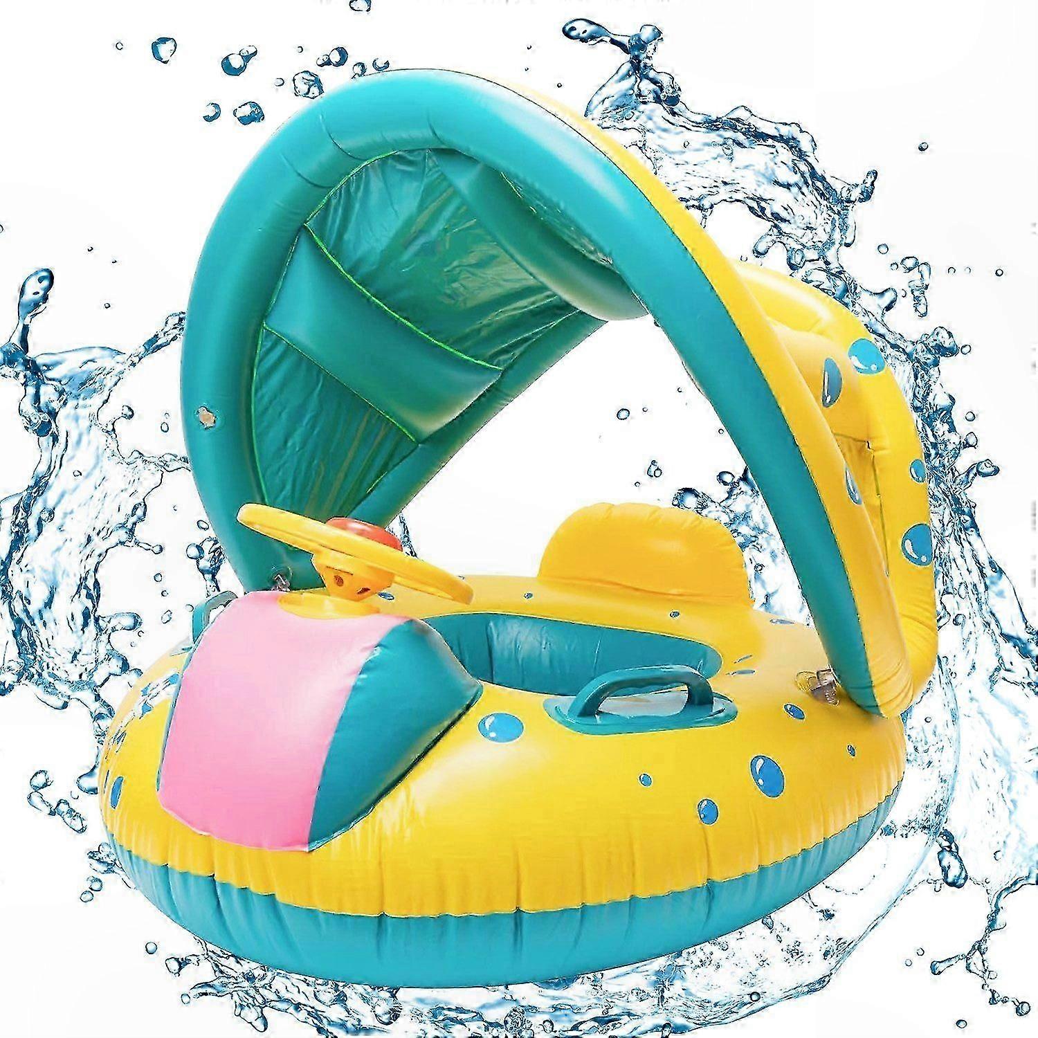 Inflatable Pool Float Ring for Toddlers, Detachable Sun Shade, Safe and Fun Water Play Accessory for Kids