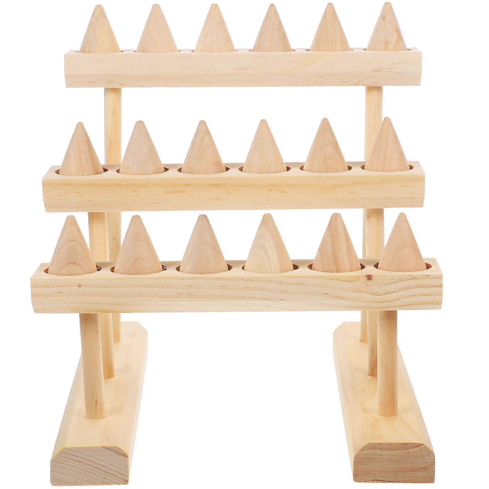 Wooden Ring Rack Cone Shaped Ring Display Stand Jewelry Organization Home Use Khaki 1Set