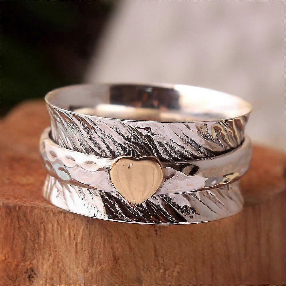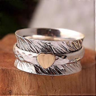 Handmade 925 Sterling Silver Heart Band Ring, Calming Spinner Ring, Elegant Jewelry for Women