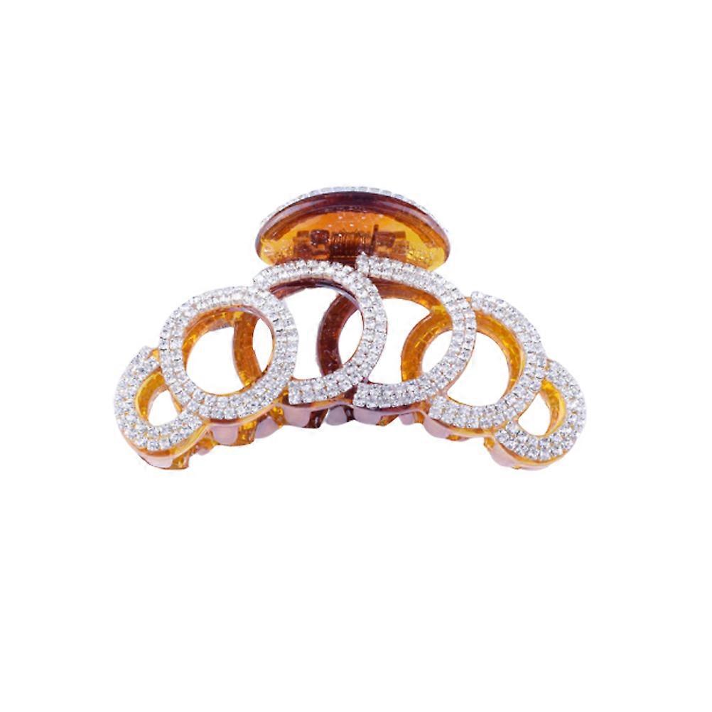 Round Ring Shaped Hair Claw with Rhinestone Hairgrip Strong Holding Hair Clips Elegant Headdress for Women and Girls Brown