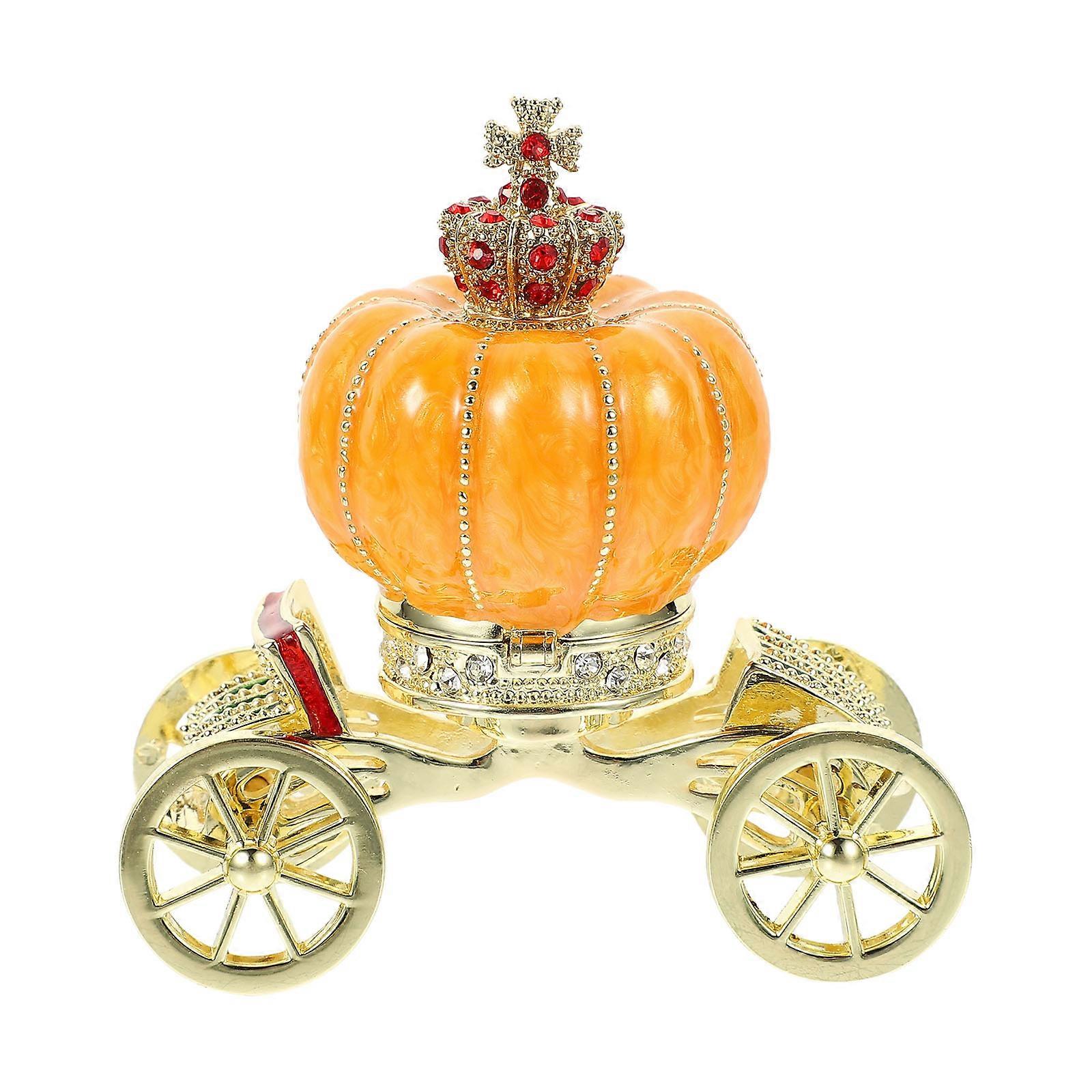 Trinket Box Pumpkin Carriage Shape Jewelry Storage Home Decor Orange 8.7x5x9.3cm 1Pack