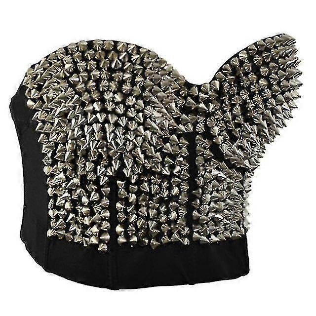 Bras For Women New Punk Lady Goth Silver Studded Bra Sexy Push Up Bustier Party Spike Rivet Metallic Punk Dance Bra