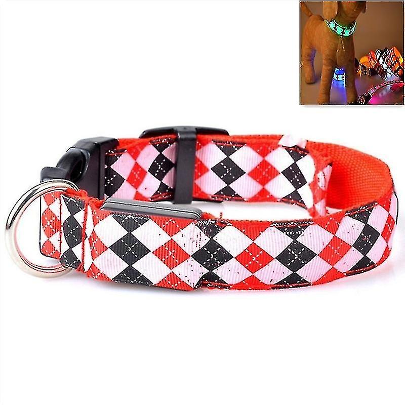 Bird Cage Bird Baths Plaid Pattern Rechargeable Led Glow Light Leads Pet Dog Collar For Small Medium Dogs Size:l Red