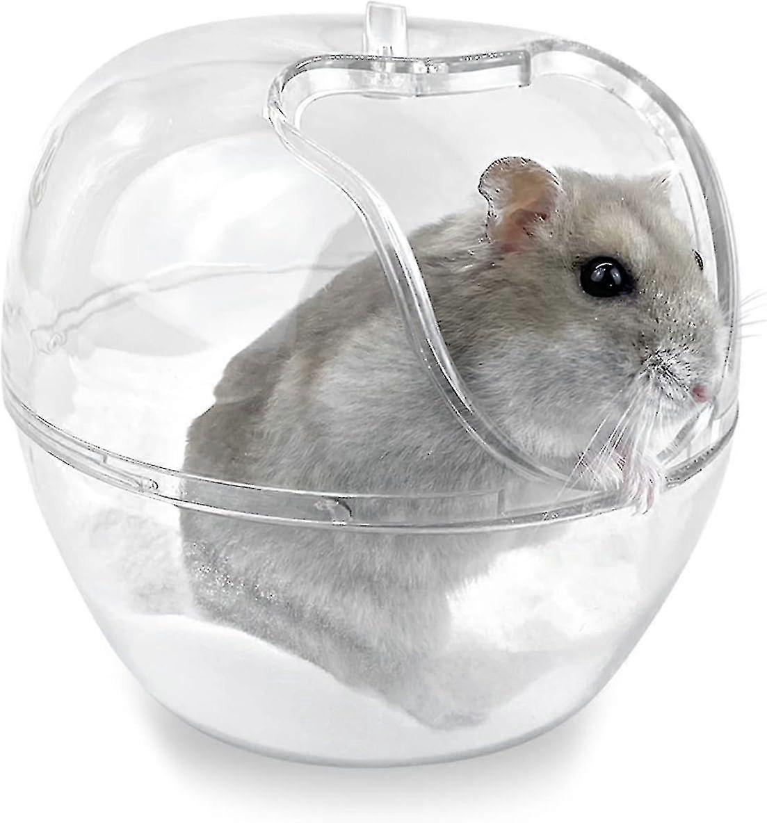 Large Entrance:Observe the life of the hamster unhindered. The design of the small door is designed with three-dimensional hamster ears above the entrance and a small foot pad to avoid removing sand from the bath when entering and leaving. Panoramic Observation:High permeability plastics, clear and transparent, easy to observe bathing, playing and digging. With a smooth, strong and durable surface, easy to clean and odor resistant. Side Entry:Watch the hamster's life unhindered. The design of the small door is designed with three-dimensional hamster ears above the entrance and a small foot pad to avoid removing sand from the bath when entering and leaving. Easy cleaning:The hamster can be taken apart for cleaning, providing your pet with a comfortable and tidy bathroom. Easy to remove the cover, the arc design of the bottom can wash dirty items effortlessly. It is a perfect bathroom for small animals. Size:17cm long, 12cm wide, 10cm high. It is associated with a sand spoon of random color. It is recommended for your Syrian hamster, mouse, chipmunks, chinchillas, fansy rat, young squirrel, lemming or other small pets.