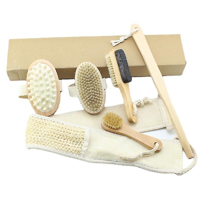 Natural Bath And Body 6 Piece Soft Bristle Brush Long Wooden Handle Back Exfoliating Full Home Spa Kit Body Cleansing