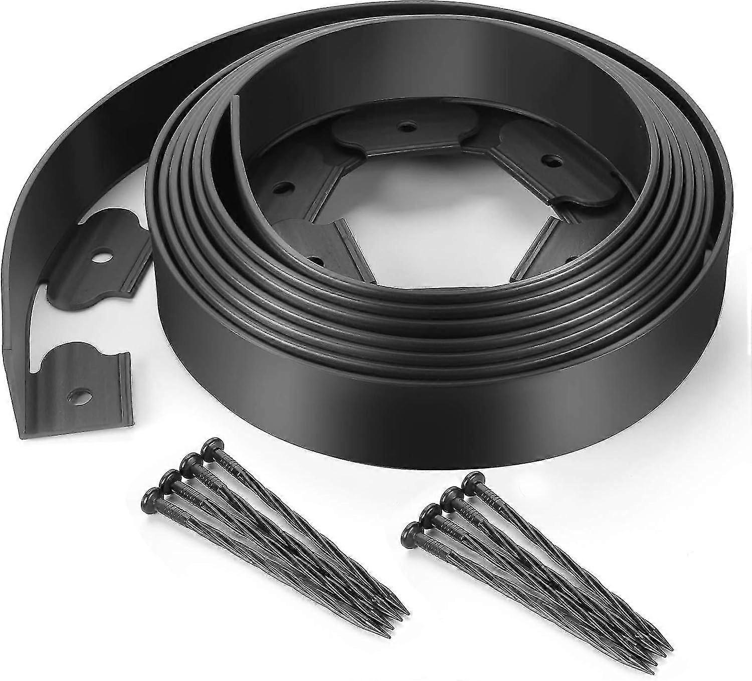 5m Garden Edging With Heavy Duty Plastic Garden Edging Stakes With 15 Garden Stakes, Height 5cm, Black