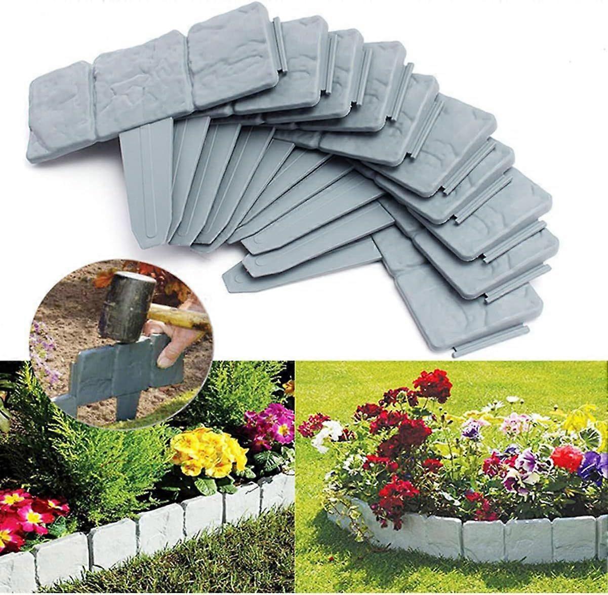Gray Plastic Garden Edging - Set of 10 Flexible Lawn Edging