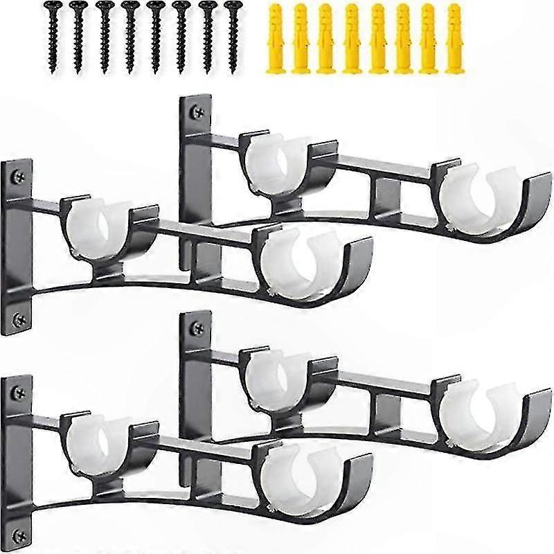 Robust Metal Curtain Rod Brackets, 4 Pack Double Bar Ceiling Mount Supports for Drapery Rods, Heavy Duty Wall and Ceiling Fixtures