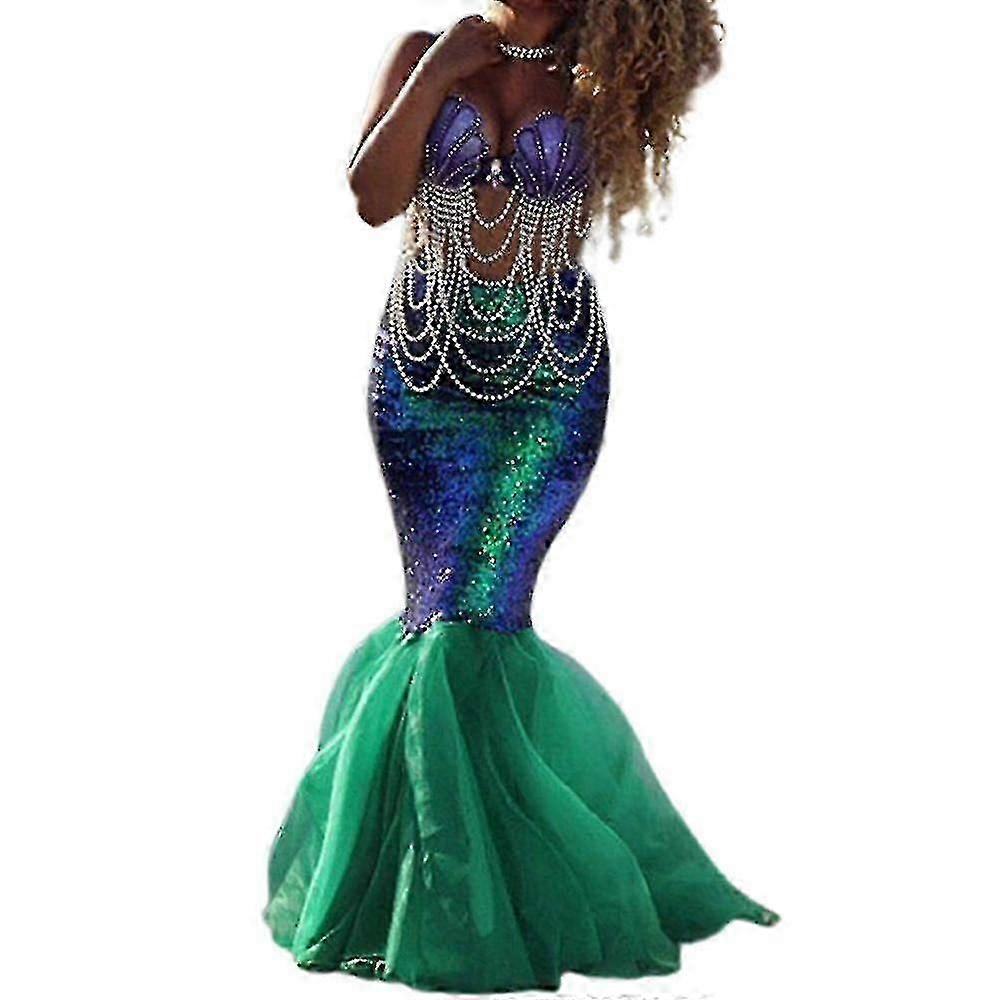 Mermaid Princess Ariel Cosplay Sequined Fishtail Skirt Costume Halloween Biling Bodycon Dress Party Womens Fancy Dress Up