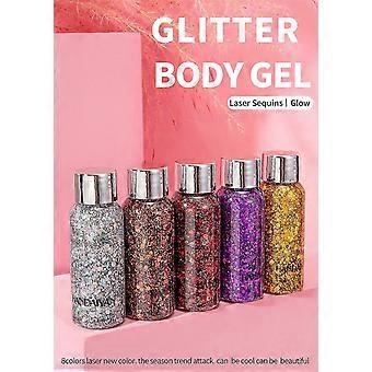 Mermaid Sequins Body Glitter Gel, Make Up Long Lasting Glitter for Body Face Hair Eyeshadow, No Glue Needed and Easy to Remove