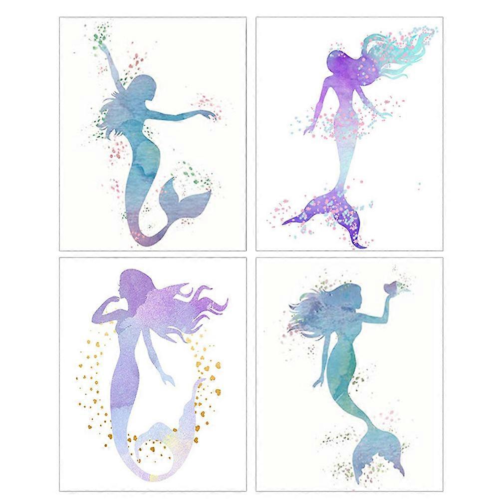 Mermaid Canvas Painting for Office Decor Detail Design Rectangle Shape 4Pcs